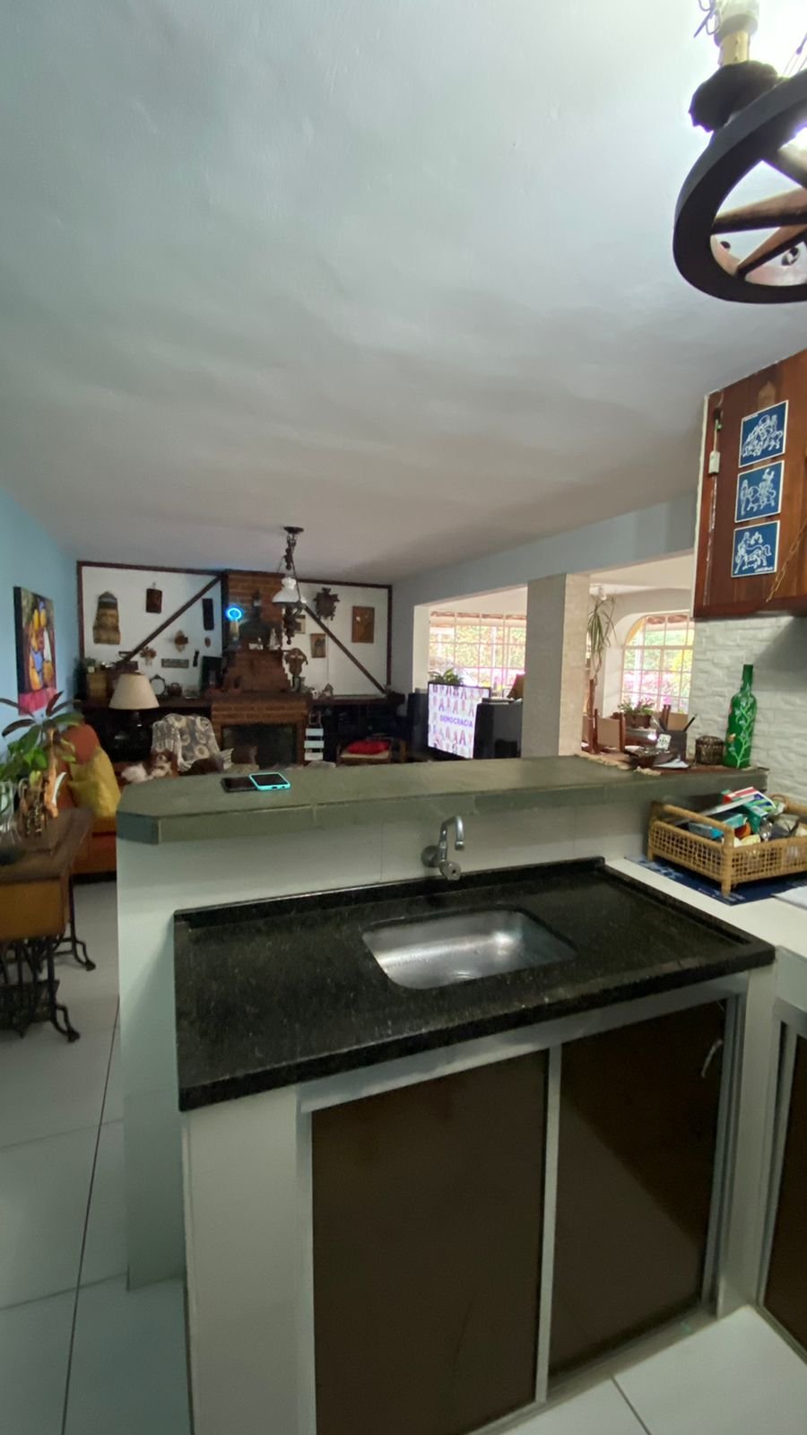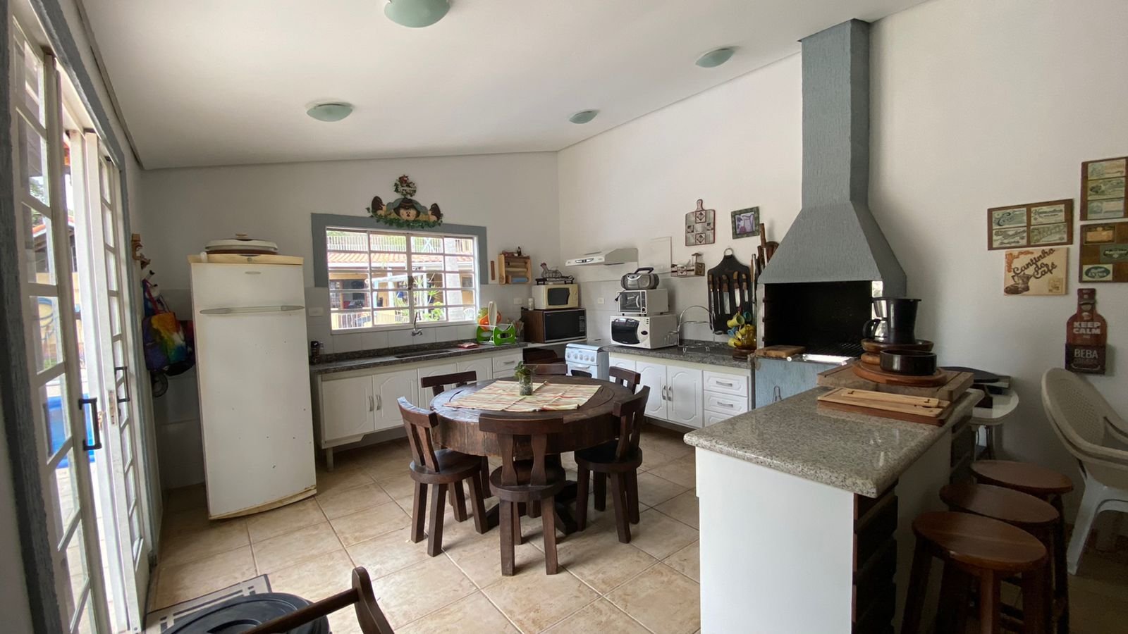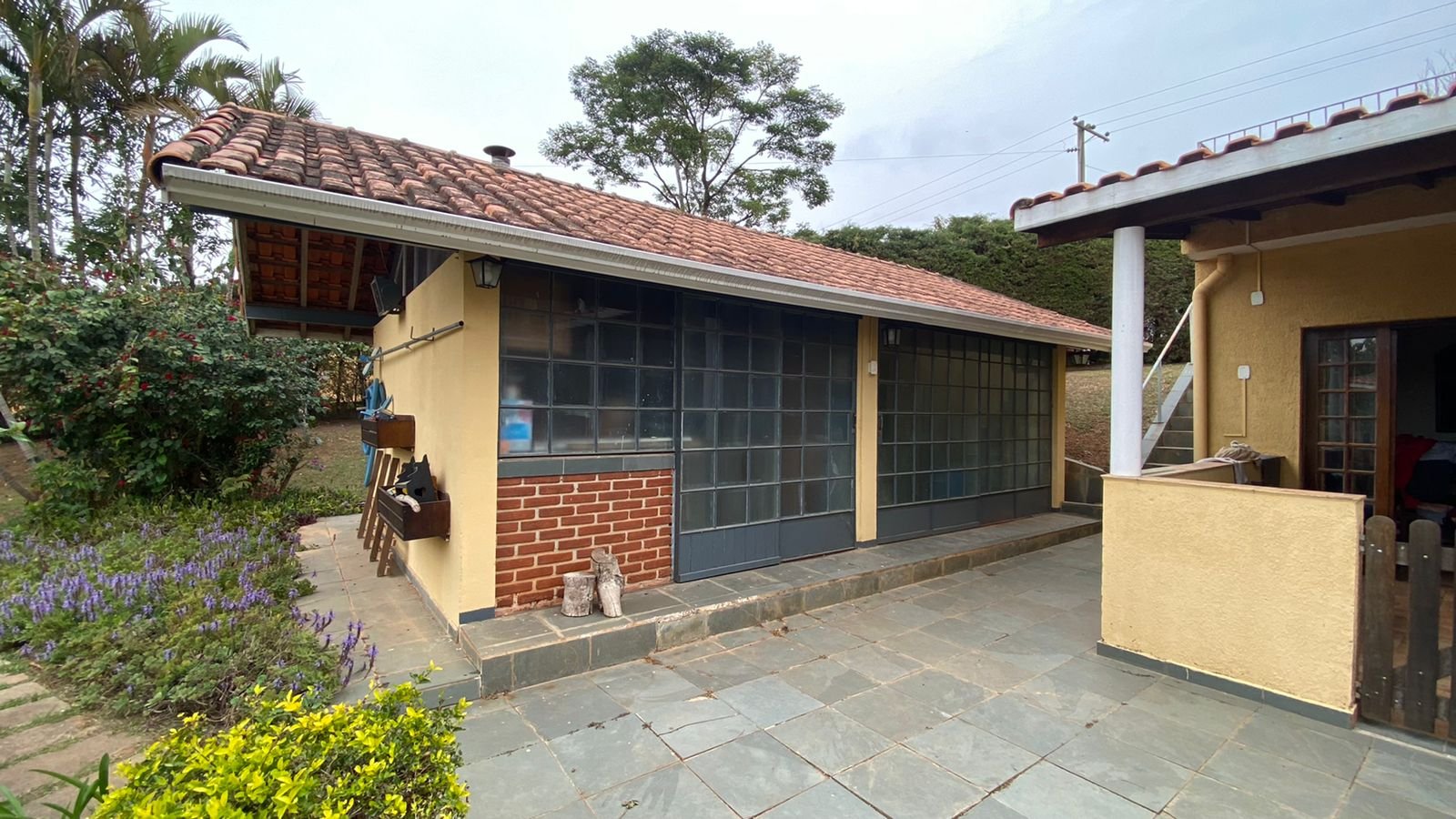 1 -Casa principal aproximadamente 340 m2 de área coberta sendo 100 m2 casa de madeira, Casa com 4 dormitorios sendo um suíte na área superior da casa , parte dw baixo ; sala para 3 ambientes , bar, cozinha ,lavabo , sauna , varandas copa cozinha.