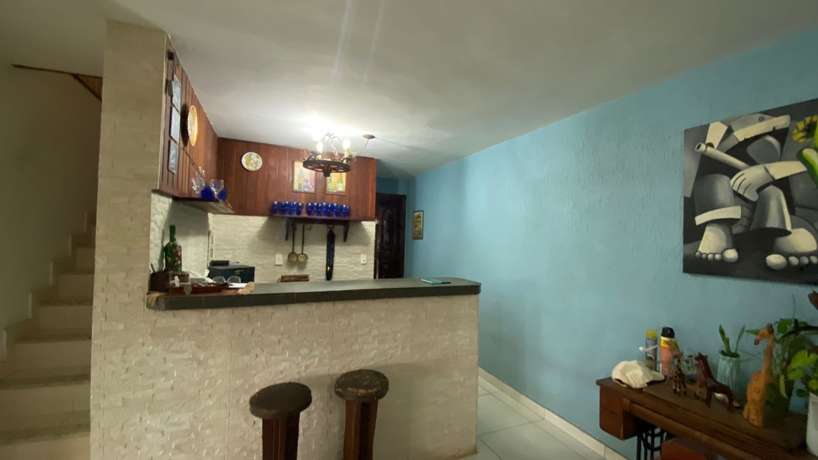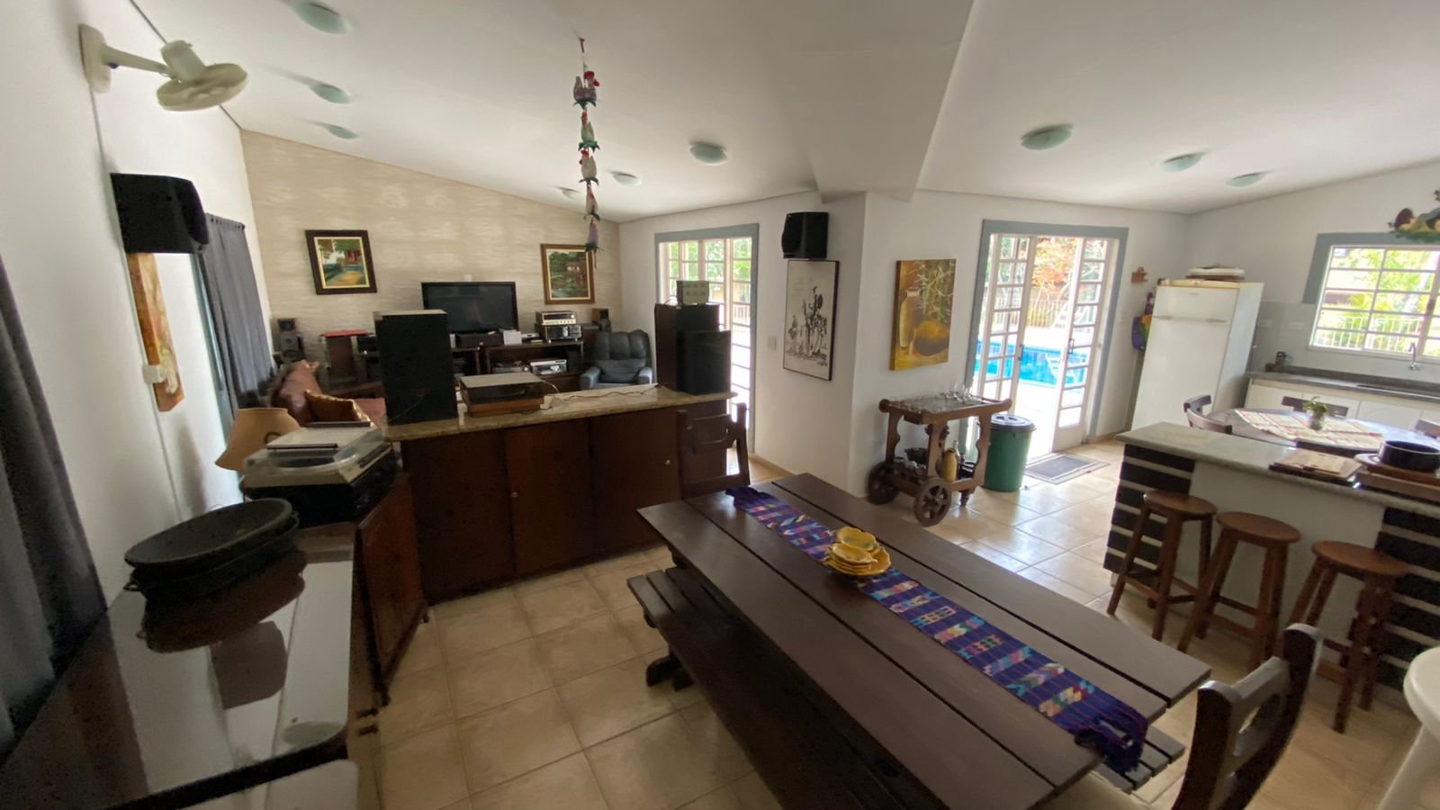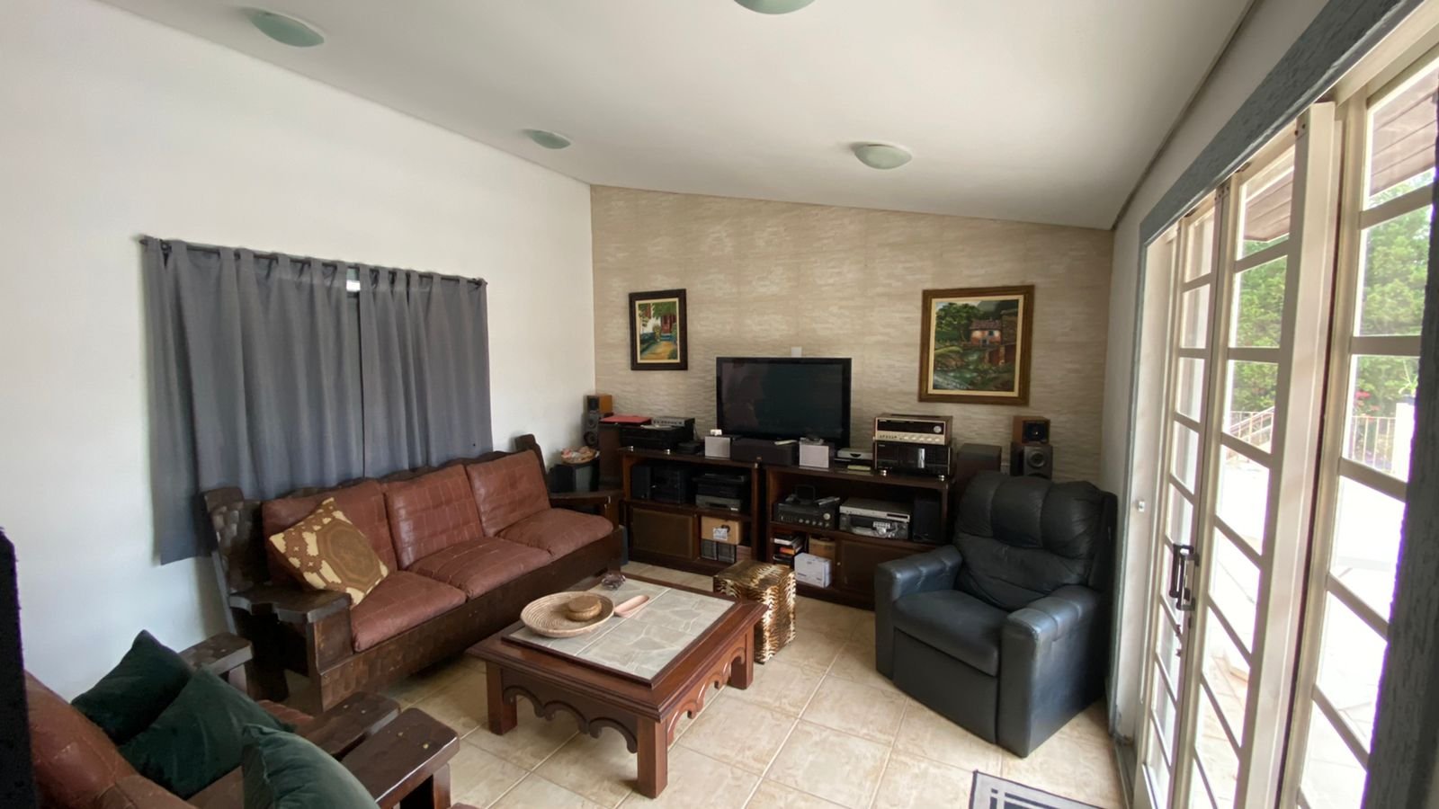 1 -Casa principal aproximadamente 340 m2 de área coberta sendo 100 m2 casa de madeira, Casa com 4 dormitorios sendo um suíte na área superior da casa , parte dw baixo ; sala para 3 ambientes , bar, cozinha ,lavabo , sauna , varandas copa cozinha.