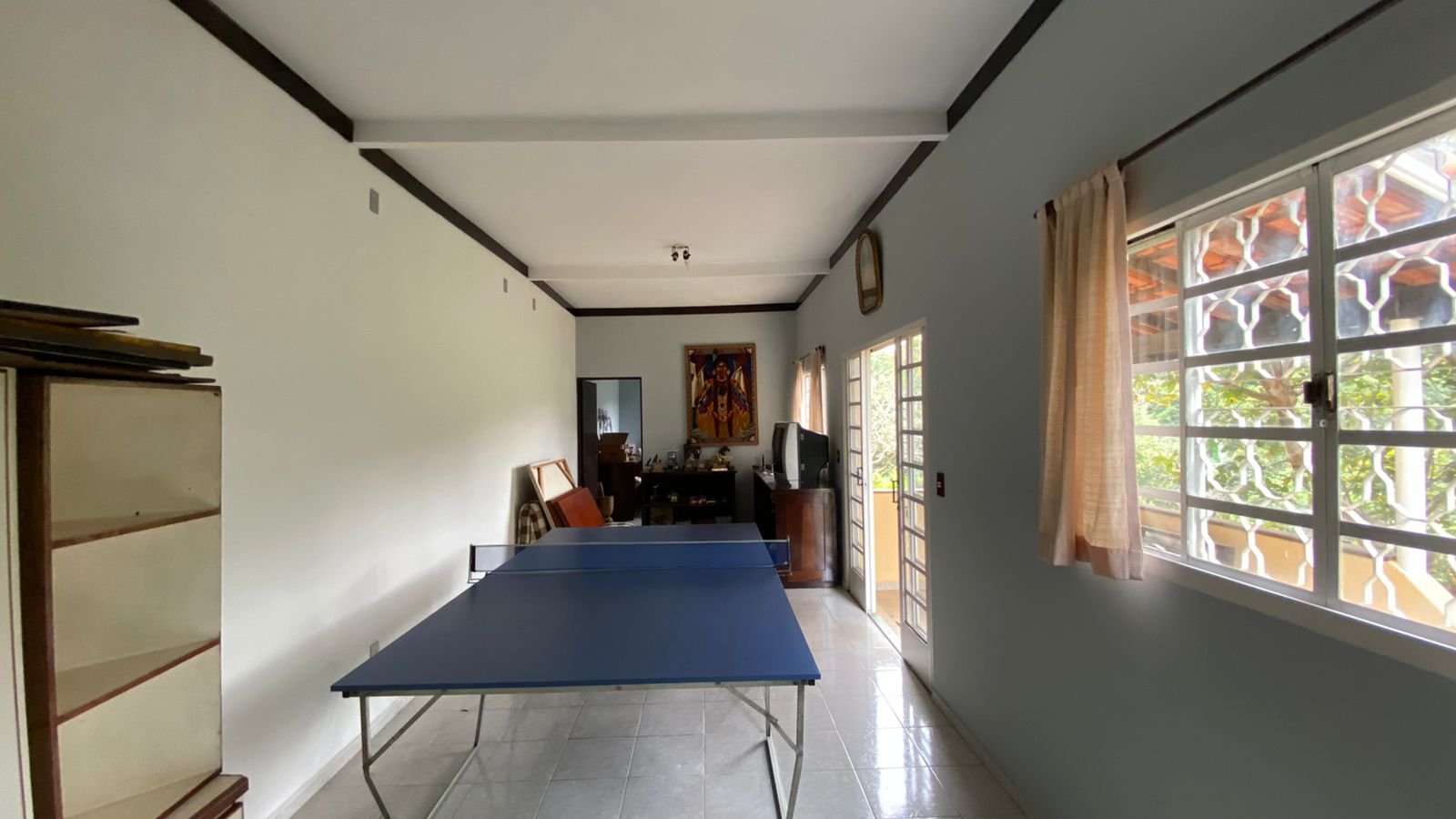 3- salão de jogos ou apartamento de aproximadamente 55 m2 sem do um salão, um dormitório, pequena copa e wc completo , pequena varanda.