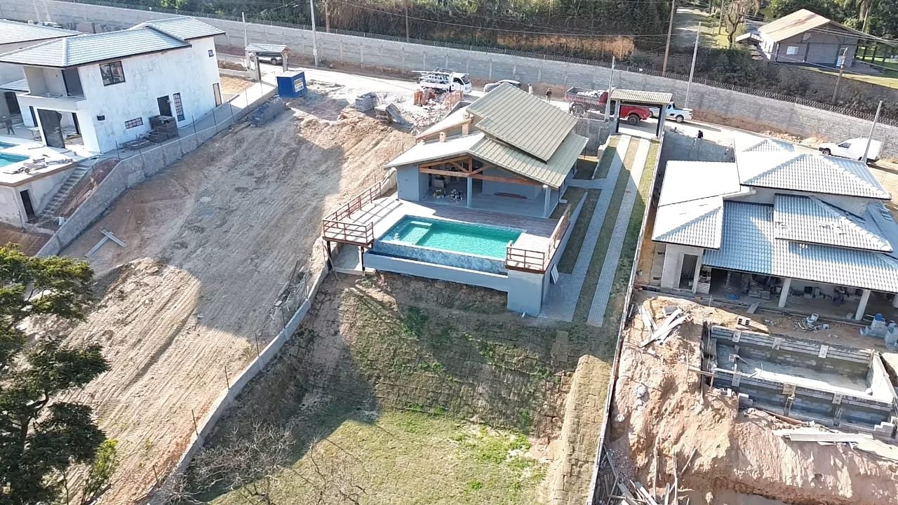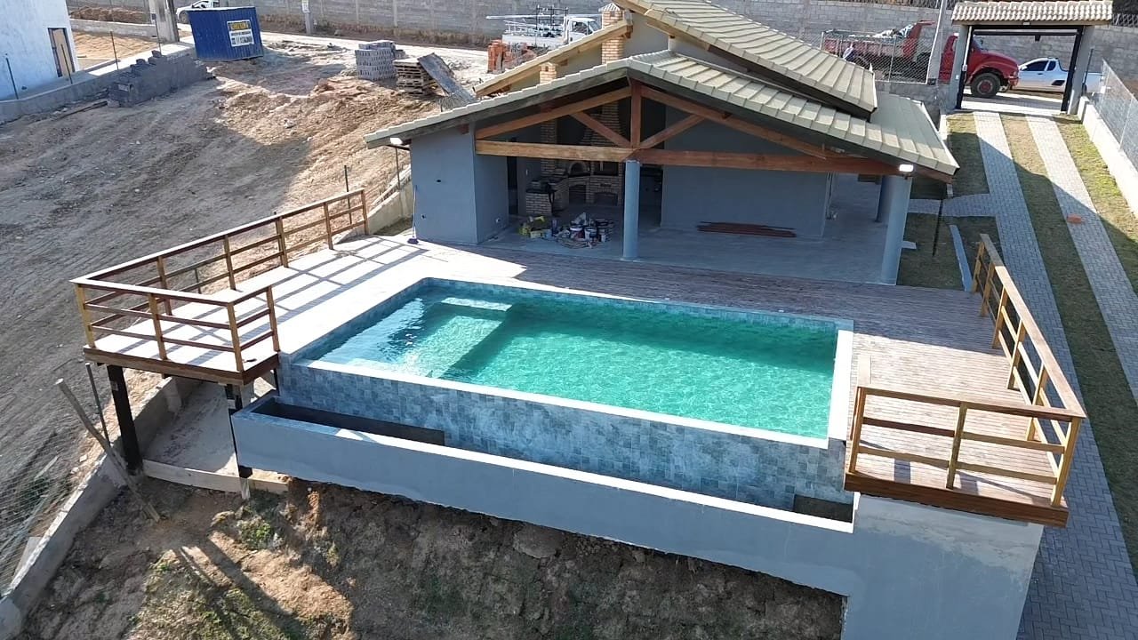 3 Dormitórios sendo 1 suítes, ampla sala de estar e cozinha, área gourmet com churrasqueira, forno e fogão a lenha, piscina borda infinita , ducha e lavabo, área de serviço independente, Garagem para 4 veículos com portão automático.